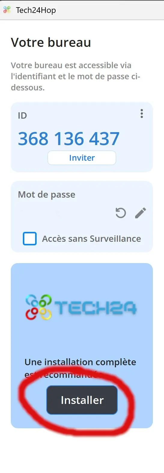 - À la fin, Tech24Hop se lance automatiquement (sinon, double‑cliquez sur l’icône sur le bureau).